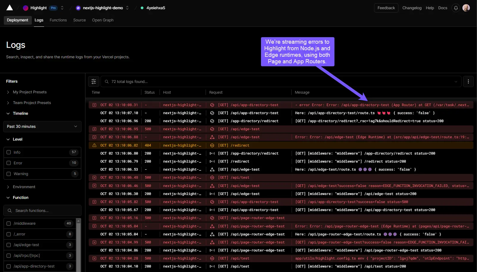 We've got errors, logs and sessions working on Vercel's Edge runtime with both Page and App Router!