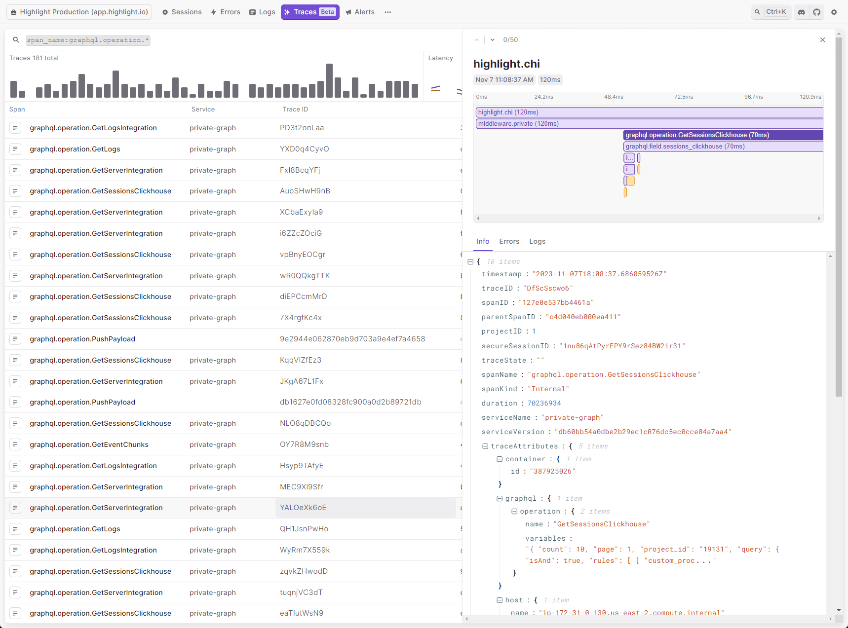 Highlight can now consume Next.js's built-in OpenTelemetry instrumentation. This means free request/response spans for Next's Node runtime. We've also re-worked our Next.js SDK docs to streamline your integrations.