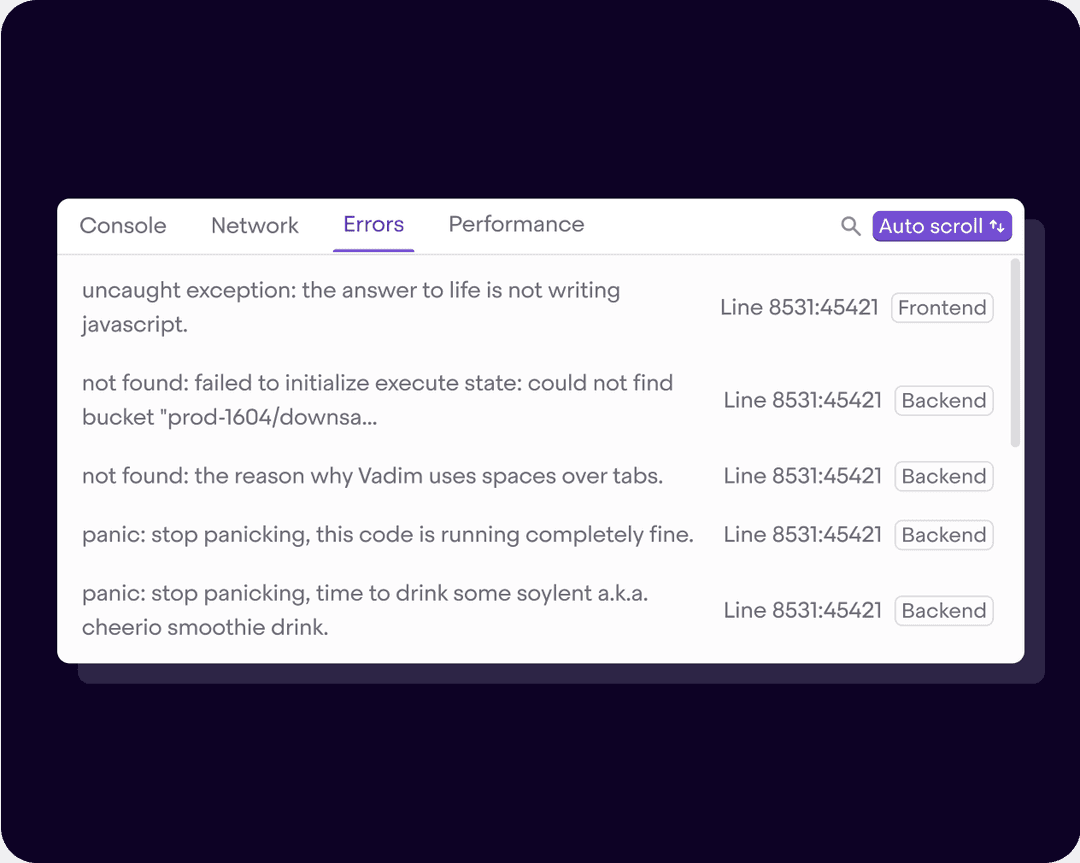 Console logs, errors, network requests, and more. Get full context around the issues on your web application.